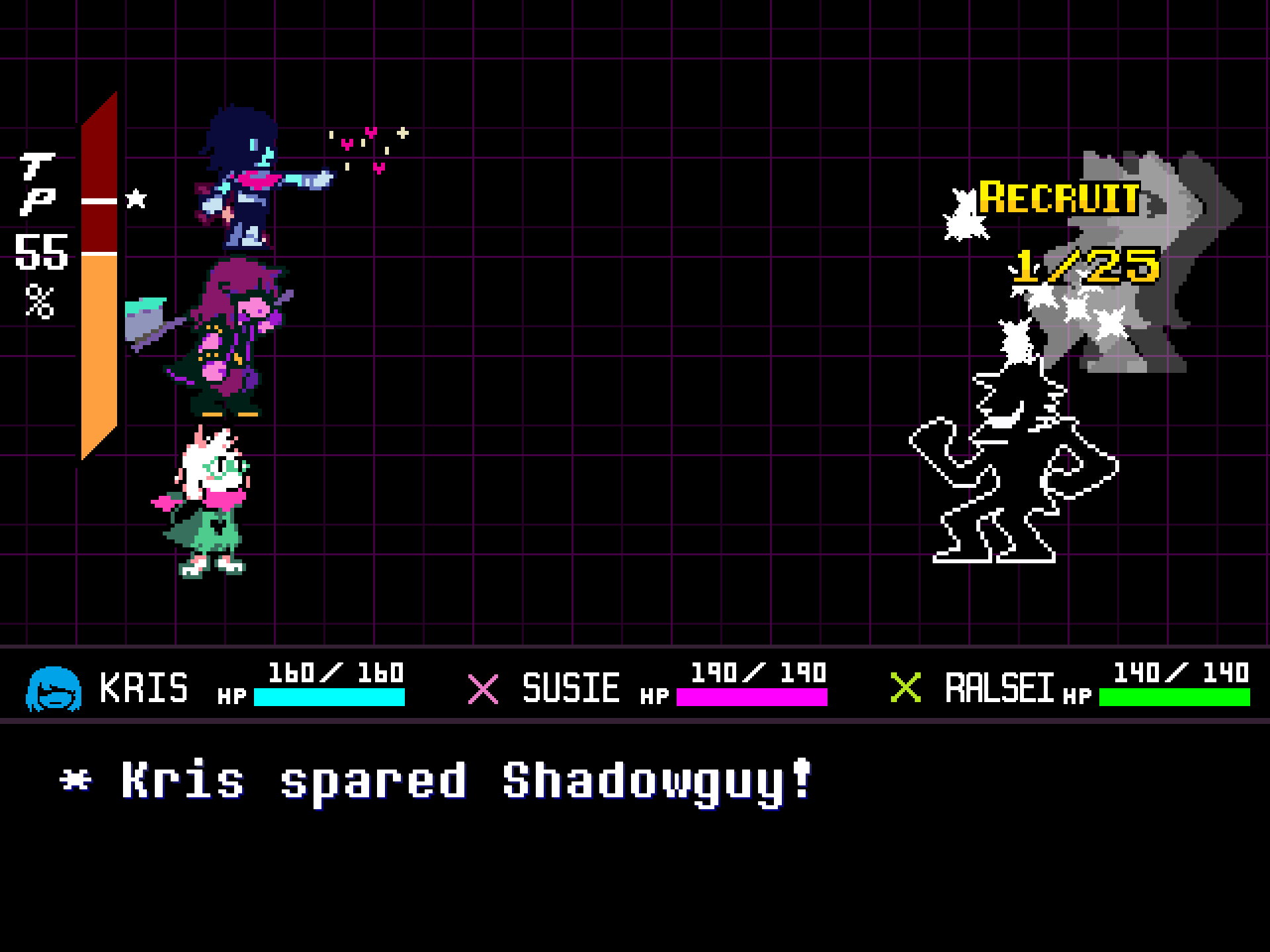 Kris spared Shadowguy! Showing RECRUIT 1/25